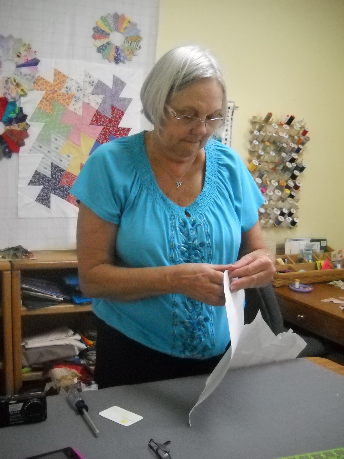 Sewing themes: and she has high, high walls and I had to get up on a really tall latter to get them up. She was a great assistant.